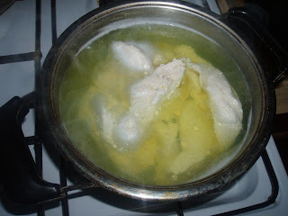 Boil for about 15 minutes, then remove the meat and vegetables. (If the photo-camera hadn't broken down, there would be more photos, but with Skynet being its techno-malicious plotting self, we'll have to take this as it is.)